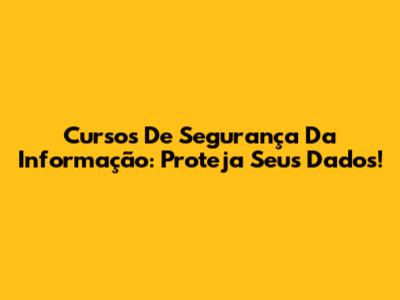 Cursos De Segurança Da Informação: Proteja Seus Dados!