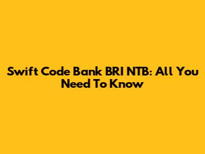 Swift Code Bank BRI NTB: All You Need To Know