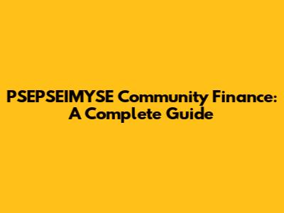 PSEPSEIMYSE Community Finance: A Complete Guide
