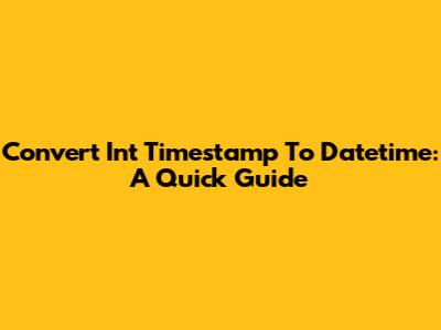 Convert Int Timestamp To Datetime: A Quick Guide