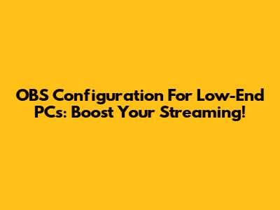 OBS Configuration For Low-End PCs: Boost Your Streaming!