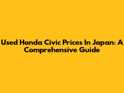 Used Honda Civic Prices In Japan: A Comprehensive Guide