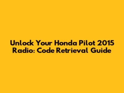 Unlock Your Honda Pilot 2015 Radio: Code Retrieval Guide