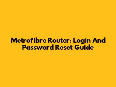 Metrofibre Router: Login And Password Reset Guide