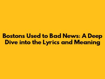 Hey guys! Ever wondered about the story behind Boston's song, "Used to Bad News"? This track, steeped in emotion and experience, is more than just a catchy tune. It's a journey through resilience and acceptance. In this article, we're going to break down the lyrics, explore the underlying themes, and uncover what makes this song so relatable. So, buckle up and let's dive into the world of Boston and their timeless hit, "Used to Bad News." Whether you're a long-time fan or new to their music, there's something here for everyone to appreciate.