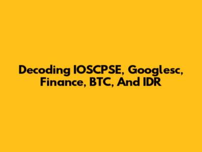 Decoding IOSCPSE, Googlesc, Finance, BTC, And IDR
