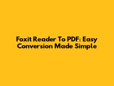 Foxit Reader To PDF: Easy Conversion Made Simple