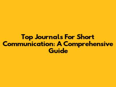 Top Journals For Short Communication: A Comprehensive Guide
