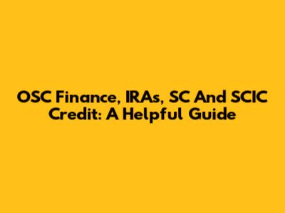 OSC Finance, IRAs, SC And SCIC Credit: A Helpful Guide