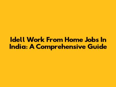 Idell Work From Home Jobs In India: A Comprehensive Guide