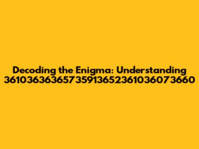 Ever stumbled upon a seemingly random string of numbers and wondered what secrets it might hold? Today, we're diving deep into the mysterious sequence 36103636365735913652361036073660. What could it possibly mean? Is it a code, a serial number, or just a figment of someone's imagination? Let's embark on this numerical adventure together and try to unravel this digital puzzle. This journey requires that we look at the possible origins, different encoding methods, and the potential applications or meanings behind such a unique sequence. The possibilities are endless, so let's put on our thinking caps and start exploring. We'll consider everything from simple numerical representations to complex cryptographic interpretations.