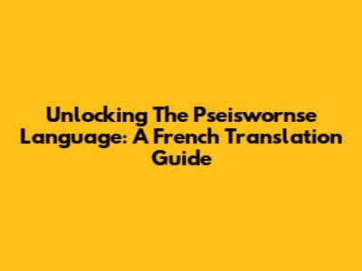 Unlocking The Pseiswornse Language: A French Translation Guide