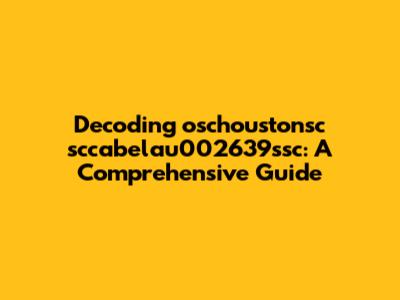 Let's dive deeper into what these components might signify. The initial part, "oschoustonsc," could be an abbreviation for a company name, location, or product line. Companies often use abbreviations to keep their internal codes concise and manageable. Think about common acronyms you see every day – they serve the same purpose! To decipher this part, we might try searching online for similar abbreviations or consult internal documentation if available. The middle segment, "sccabelau," could be another identifier, possibly related to a specific product model or a project code. Again, breaking it down further – perhaps "scc" stands for something, "abelau" another component. This method is crucial because many systems use a hierarchical structure for their identifiers, where each part of the string corresponds to a specific category or attribute. The final portion, "002639ssc," is particularly intriguing because it includes both numbers and letters. This often indicates a serial number, a date code, or a version number. The numerical part, "002639," likely represents a sequential identifier, while the "ssc" could be a suffix indicating a specific batch or version. Understanding these conventions can significantly speed up the decoding process. Remember, the key is to approach the string systematically, breaking it down and analyzing each component in isolation before trying to piece the whole puzzle together. By doing so, you’ll be well on your way to unlocking the mystery of these complex identifiers!