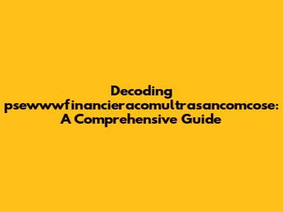 Navigating the digital world can sometimes feel like deciphering an ancient code. You stumble upon strange strings of characters, and you're left wondering, "What on earth does that even mean?" Today, we're diving deep into one such enigma: psewwwfinancieracomultrasancomcose. Now, I know what you're thinking: that looks like someone mashed their keyboard! But fear not, intrepid internet explorers, because we're going to break it down and figure out what it could possibly signify.