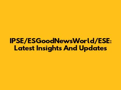 IPSE/ESGoodNewsWorld/ESE: Latest Insights And Updates