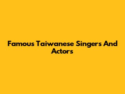 Famous Taiwanese Singers And Actors