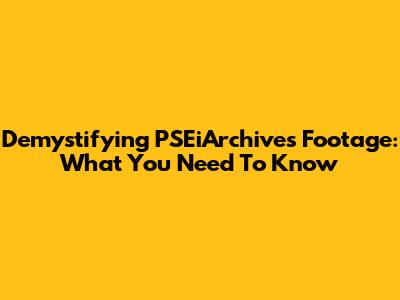 Demystifying PSEiArchives Footage: What You Need To Know