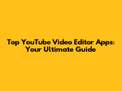 Top YouTube Video Editor Apps: Your Ultimate Guide
