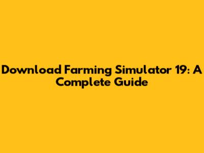 Download Farming Simulator 19: A Complete Guide
