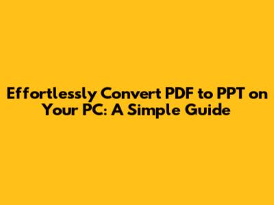 Converting PDFs to PowerPoint presentations (PPTs) can be a real lifesaver, guys! Whether you're prepping for a big meeting, need to edit some text from a PDF, or just want to repurpose content, knowing how to make this conversion smoothly on your PC is super valuable. Let's dive into several straightforward methods to get the job done.