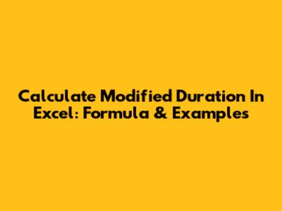 Calculate Modified Duration In Excel: Formula & Examples