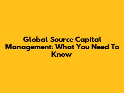 Global Source Capital Management: What You Need To Know
