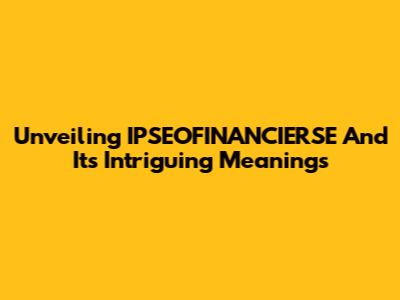 Unveiling IPSEOFINANCIERSE And Its Intriguing Meanings