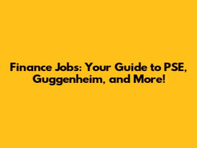 Hey there, finance fanatics and career climbers! Are you ready to dive into the exciting world of finance jobs? We're talking about opportunities at powerhouses like PSE, Guggenheim, and a whole host of other incredible companies. Whether you're a seasoned pro or just starting to explore, this guide is your one-stop shop for everything you need to know about landing your dream job in the finance sector. We'll break down what these roles entail, the skills you'll need, and how to make your application stand out from the crowd. So, buckle up, because we're about to embark on a journey through the dynamic landscape of finance, exploring the opportunities awaiting you at companies like PSE, Guggenheim, and other industry leaders! Get ready to level up your career game, discover amazing opportunities, and potentially snag that job you've always dreamed of. Let's get started!