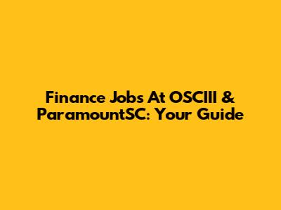 Finance Jobs At OSCIII & ParamountSC: Your Guide