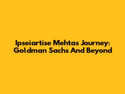 Ipseiartise Mehta's Journey: Goldman Sachs And Beyond