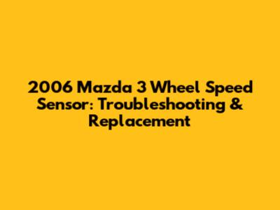 2006 Mazda 3 Wheel Speed Sensor: Troubleshooting & Replacement