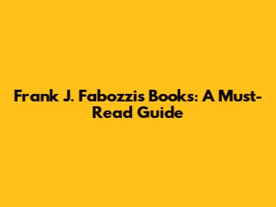 Frank J. Fabozzi's Books: A Must-Read Guide