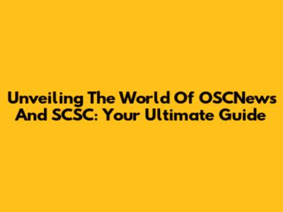 Unveiling The World Of OSCNews And SCSC: Your Ultimate Guide
