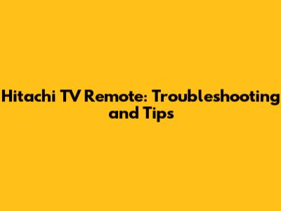 Understanding Your Hitachi TV Remote