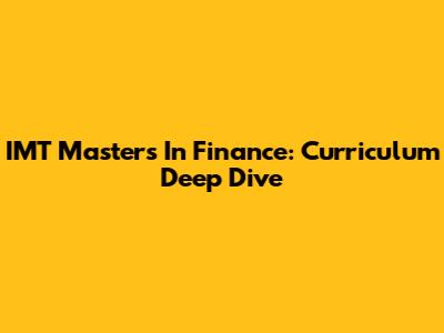 IMT Masters In Finance: Curriculum Deep Dive