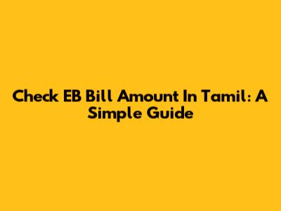 Check EB Bill Amount In Tamil: A Simple Guide