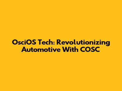 OsciOS Tech: Revolutionizing Automotive With COSC