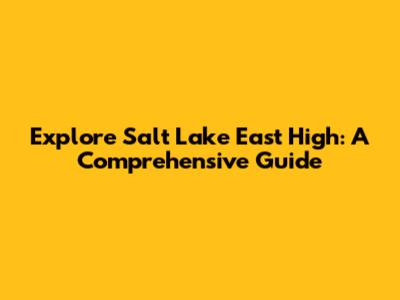 Explore Salt Lake East High: A Comprehensive Guide