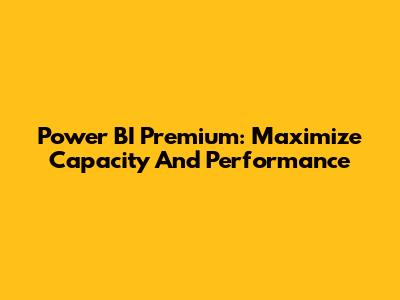 Power BI Premium: Maximize Capacity And Performance