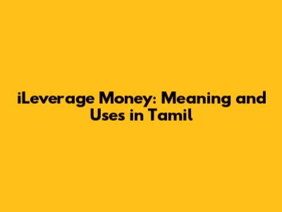 Hey guys! Let's dive into what "iLeverage money" means in Tamil. Understanding financial terms in your native language can make managing your money way easier. This article will break down the concept of leverage, how it works, and how you can use it wisely. So, grab a cup of coffee, and let’s get started!