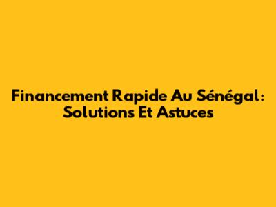 Financement Rapide Au Sénégal: Solutions Et Astuces