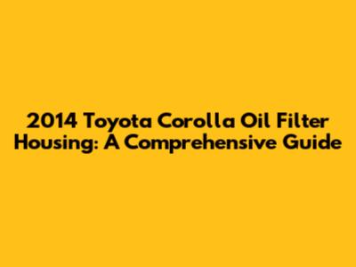 2014 Toyota Corolla Oil Filter Housing: A Comprehensive Guide