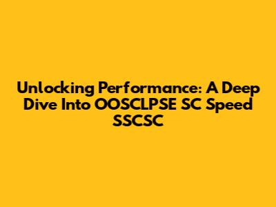 Unlocking Performance: A Deep Dive Into OOSCLPSE SC Speed SSCSC