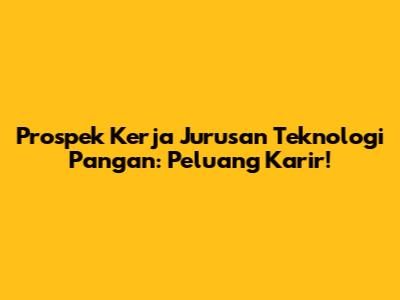 Prospek Kerja Jurusan Teknologi Pangan: Peluang Karir!