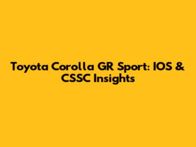 Toyota Corolla GR Sport: IOS & CSSC Insights