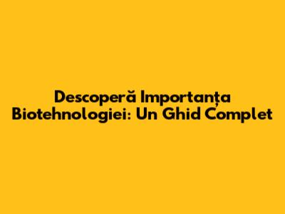 Descoperă Importanța Biotehnologiei: Un Ghid Complet