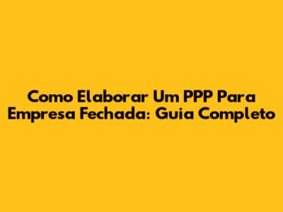 Como Elaborar Um PPP Para Empresa Fechada: Guia Completo