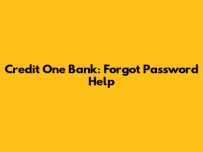 Credit One Bank: Forgot Password Help