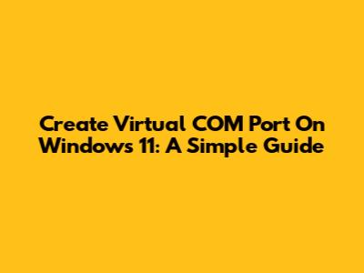 Create Virtual COM Port On Windows 11: A Simple Guide