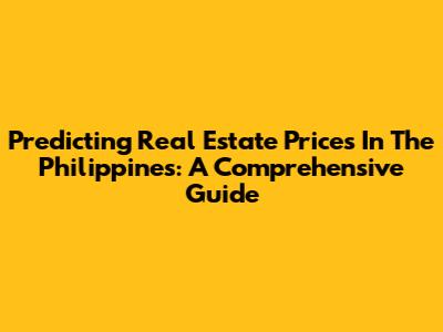 Predicting Real Estate Prices In The Philippines: A Comprehensive Guide